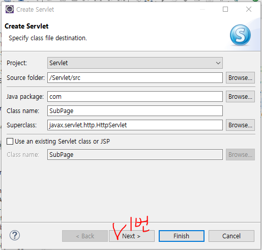 오른쪽 단추를 해당폴더에서 눌러 new - Servlet 선택.