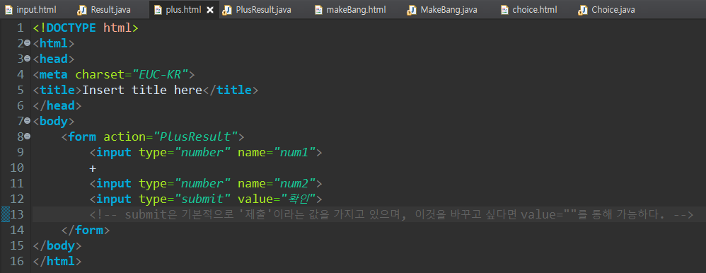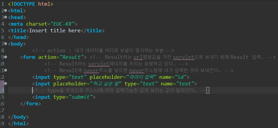 데이터 전송을 위한 3가지 조건 : form태그 안에 작성한다.