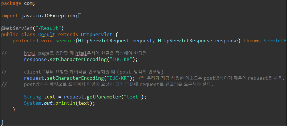 request.setCharacterEncoding("EUC-KR"); 을 입력해주면 사용 가능하다.