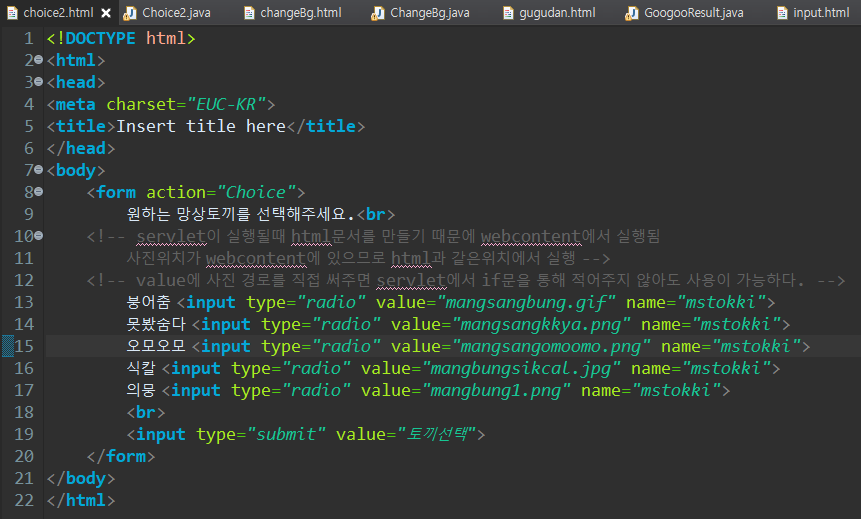 radio 타입을 이용해서 선택한 그림이 나오게 만들어보자. (어제 만든 것을 좀 더 편하게 사용할 수 있도록 upgrade)