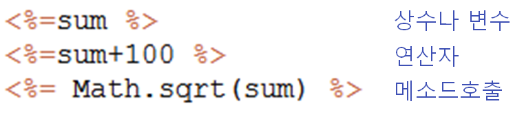 - JSP 페이지에서 자바 사용을 위해 태그하는 특정 기술