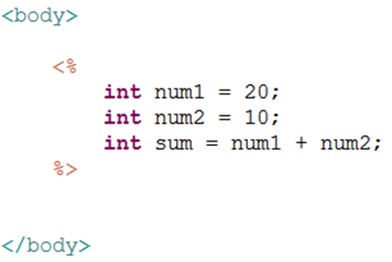 - JSP문서 안에 JAVA코드를 넣기 위해 사용함. 그러나 JSP는 모든 것을 태그화하여 쓰는 것이 목적이므로 줄여가도록 함.