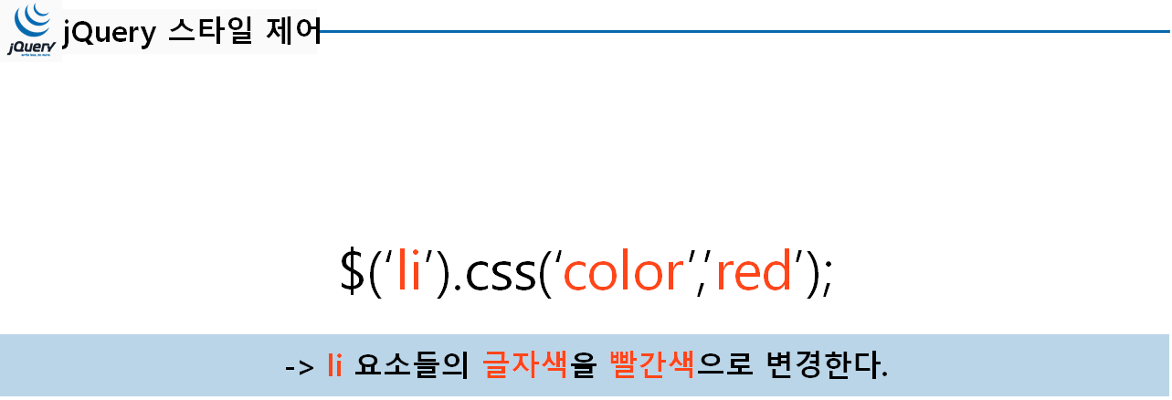 자바스크립트를 이용하면 2문장을 이용해야했지만 제이쿼리를 이용하면 한 문장으로 간단하게 끄읕.